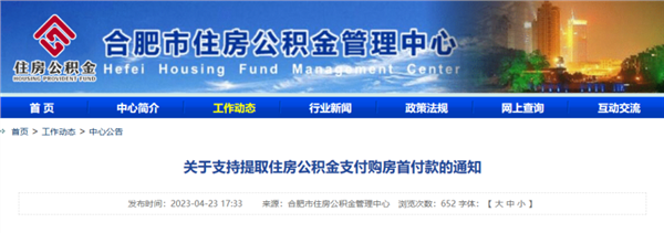4月23日,合肥住房公积金管理中心发布《关于支持提取住房公积金支付购房首付款的通知》。