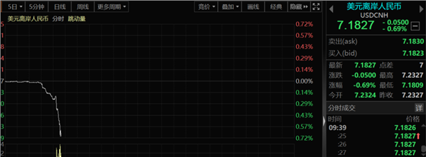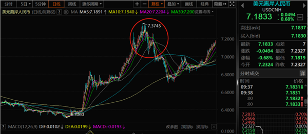 今天,在这一参数上调之后,离岸人民币更是迎来了大涨,美元离岸人民币直落500点。