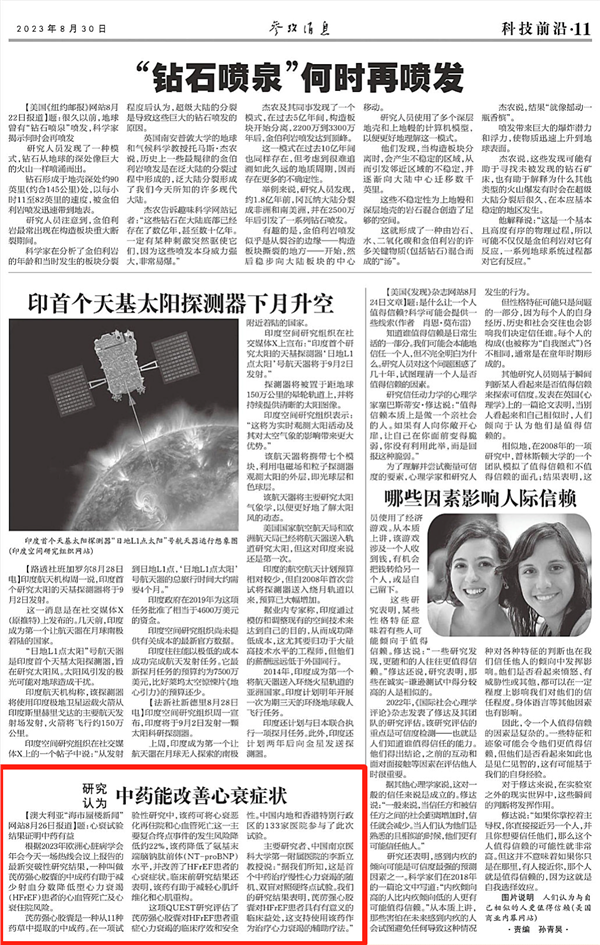 网络整理 2025-09-01 11:048月30日,《参考消息》刊发文章《研究认为中药能改善心衰症状》。