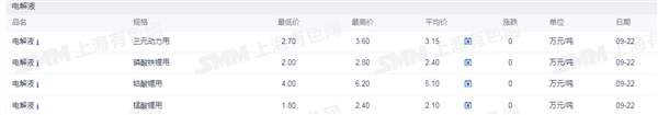 网络整理 2025-09-01 12:14证券之星新能源车行业周报:据上海有色网,截止9月22日,电池级碳酸锂16.5-17.9万元/吨,环比上一工作日下跌1500元/吨;工业级碳酸锂15.5-16.4万元/吨,环比上一工作日下滑1500元/吨。近期随着碳酸锂价格的持续下探,部分锂盐企业制造成本已被击穿,逐步调低开工,产量走低,部分厂家挺价心态渐强,跌幅有所收窄。