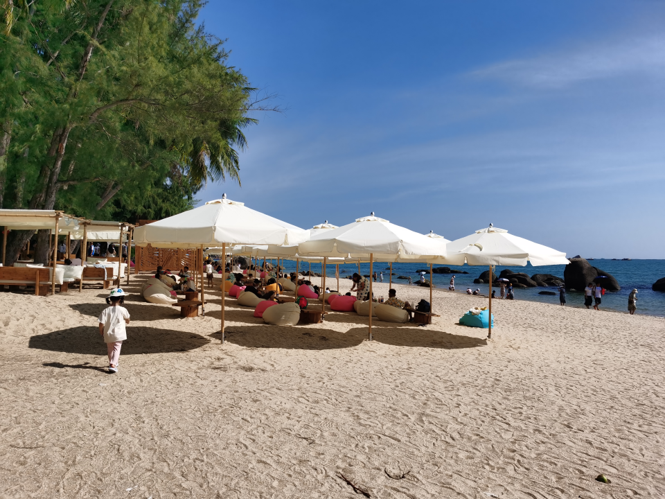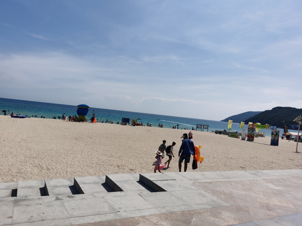下午是大东海天然海滨浴场,其也是免费开放的4A级景区。蓝天、碧海、青山、绿椰、白沙滩,“水暖沙白滩平”使得大东海闻名海内外。大东海有专门划出来的游泳区域,游客可以租一个救生圈、买个手机防水袋去划水,体验漂浮起来的感觉,释放平日里工作的压力。
