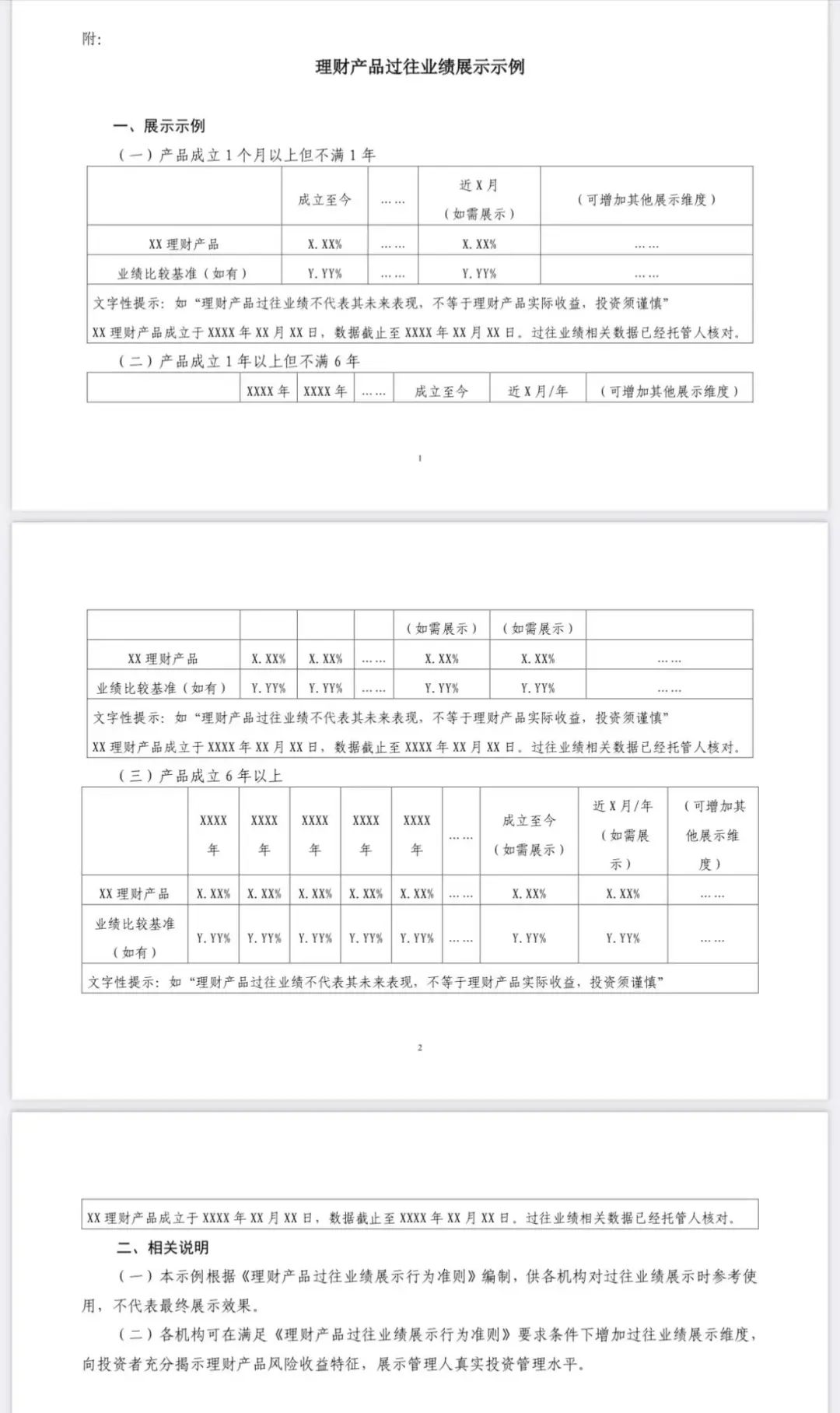 同时发布的还有《理财产品过往业绩展示示例》。未来银行等机构也可在《行为准则》要求下增加过往业绩展示维度,向投资者充分揭示理财产品风险收益特征,展示管理人真实投资管理水平。