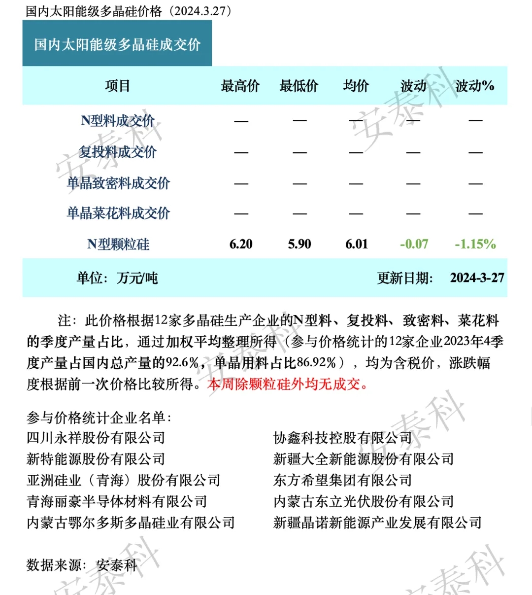 光伏周报:本周除颗粒硅外均无成交!这一多晶硅企业正式破产