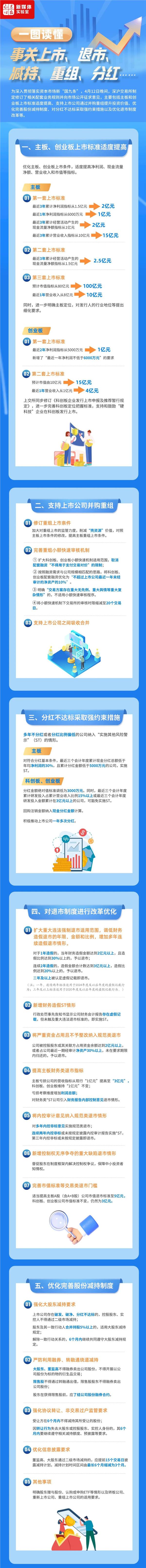 网络整理 2025-09-02 08:19(原标题:一图看懂上市、退市、减持、重组、分红新规 主板和创业板上市标准提高)
