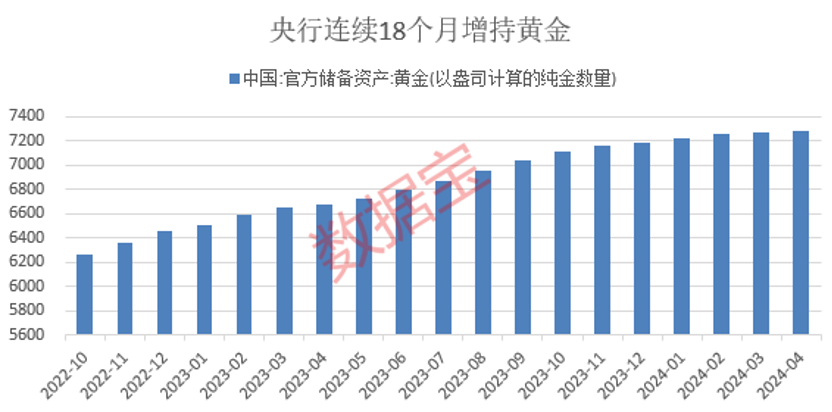 目前,中国人民银行已连续18个月增持黄金。尽管4月份我国黄金储备继续增长,但增幅是近18个月来的最低值。在东方金诚首席宏观分析师王青看来,4月份增幅较小或与当月国际金价上涨幅度显著扩大等因素有关。