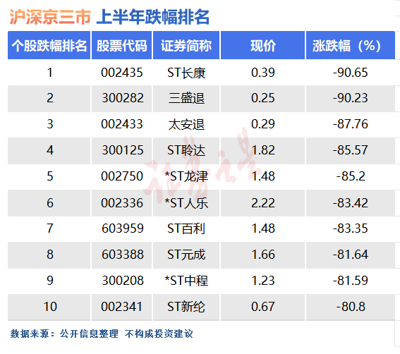 A股上半年牛熊股盘点:正丹股份成为榜首,ST板块风险集中释放