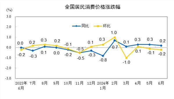 转载请标注:信息网——2024年6月份居民消费价格同比上涨0.2%