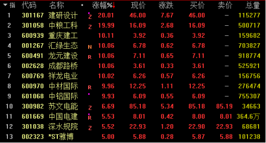 网络整理 2025-11-16 05:09今日基建板块大幅走高,截止发稿,建研设计、重庆建工、龙元建设、成都路桥、中材国际、中铝国际涨停;中国电建、深水规院等个股涨幅超5%。