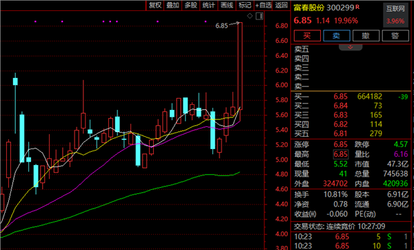 另外,游戏股盘中拉升,富春股份20CM涨停,实丰文化3连板,天娱数科、盛天网络、姚记科技涨超5%,冰川网络、奥飞娱乐、游族网络、昆仑万维等跟涨。