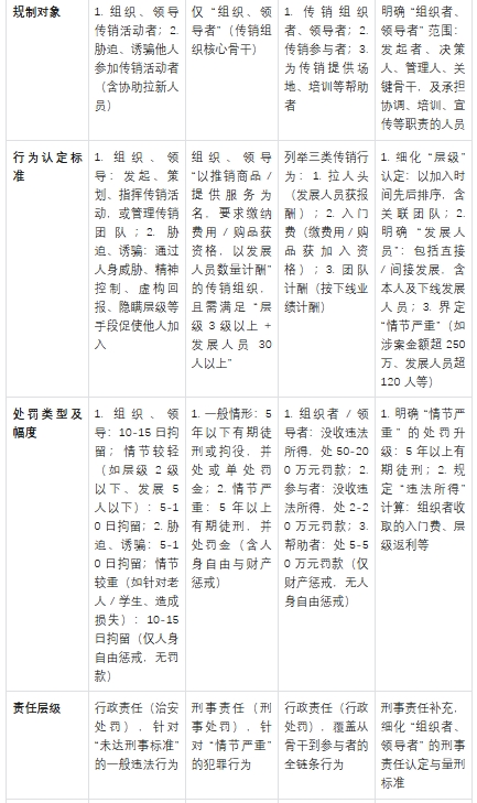 一、组织、领导传销活动相关法律法规核心差异对比表