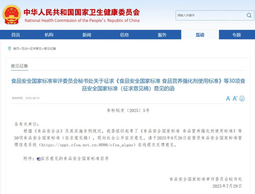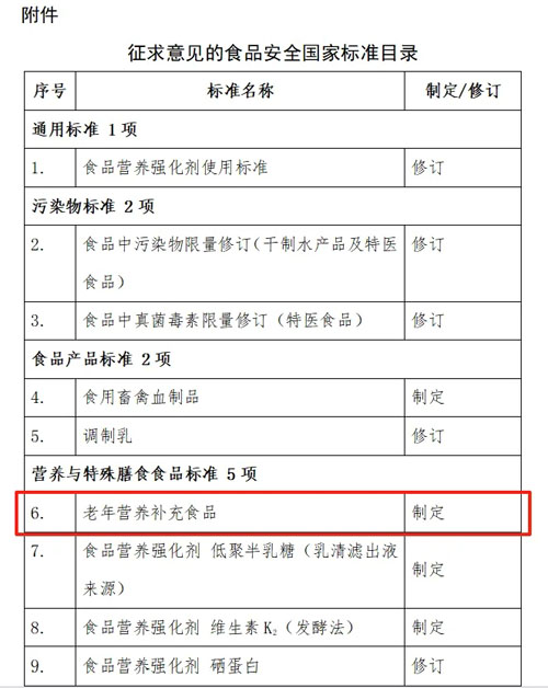 网络整理 2025-08-31 03:198月1日,食品安全国家标准审评委员会秘书处发文于征求《食品安全国家标准 食品营养强化剂使用标准》等30项食品安全国家标准(征求意见稿)意见,其中《食品安全国家标准 老年营养补充食品》作为我国首个针对老年人群的营养补充食品强制性国标,被列入《征求意见的食品安全国家标准目录》第 5 项。标志着长期 “野蛮生长” 的银发营养市场,即将迈入标准化、规范化发展的新阶段。