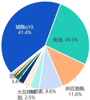 心脑血管营养品以77.4亿元销售额成为保健食品最大品类,辅酶Q10(41.4%)和鱼油(26.5%)构成双支柱。普丽普莱辅酶Q10软胶囊年销售额4713.2万元,同比增长94.1%。