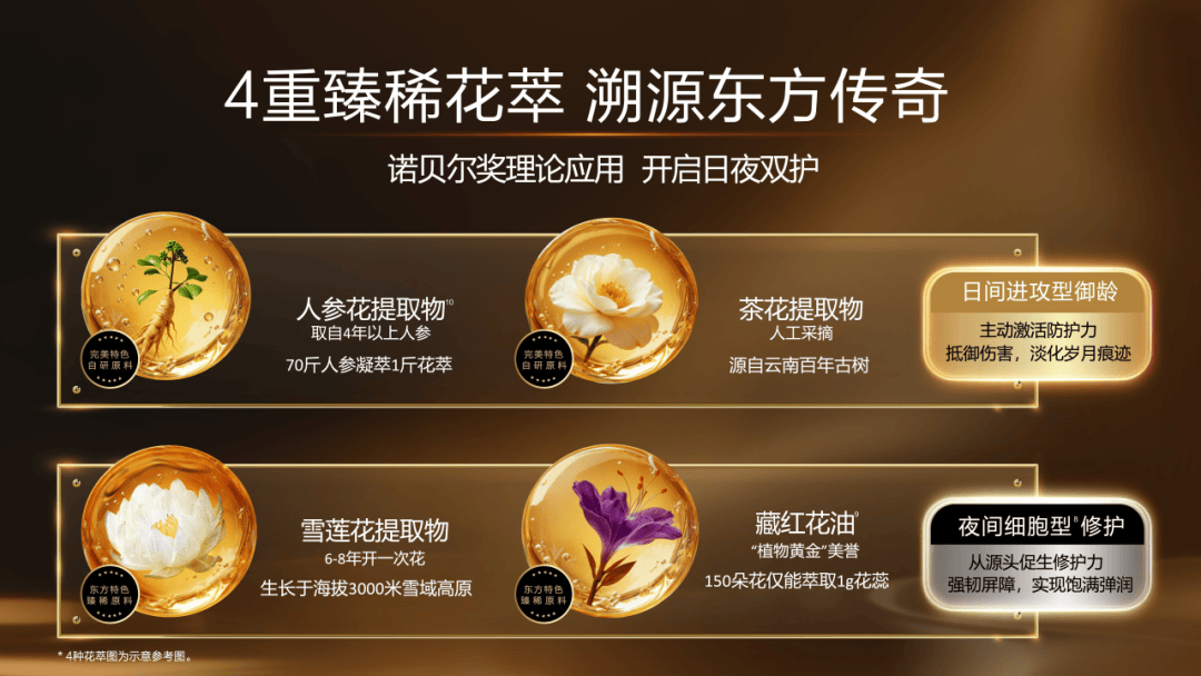 (2)4重东方臻稀花萃:臻稀原料,赋能精准抗皱