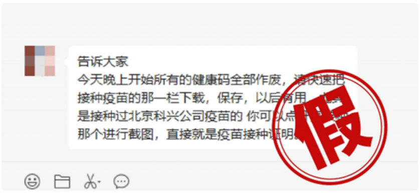 这则传言起因,“通信行程卡”服务下线,然而这条消息,却被改头换面套在了健康码上,网络出现“健康码要作废,要截屏疫苗接种记录,否则会找不到接种记录”的谣言。