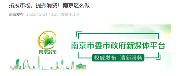 12月21日,“南京发布”官微发文称,南京市召开“强信心添动力促发展”系列主题新闻发布会第二场“拓展市场提振消费”专场。