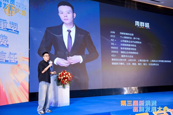 下午的分享中,来自牛微文化传媒董事总经理周群超的演讲掀起高潮。这位拥有2亿抖音粉丝的“微商教父”直言:“不做短视频,品牌将失去50%的线上零售机会!”他现场展示AI赋能的新玩法: